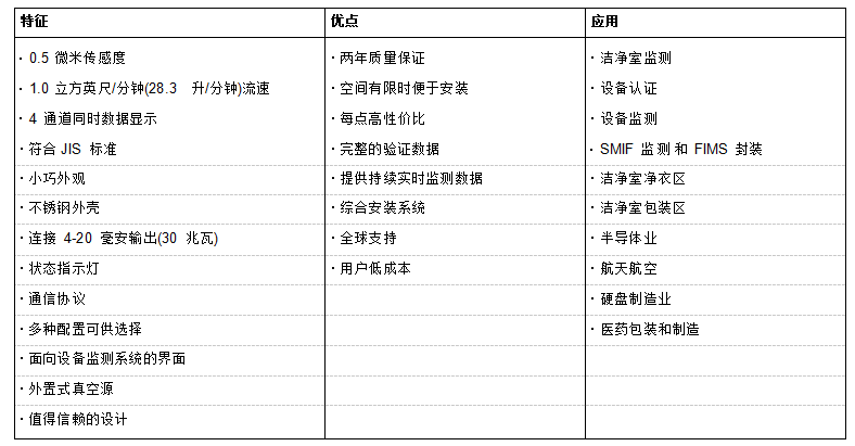 0.5 微米感應(yīng)度和 0.1 立方英尺/分鐘(2.83 行數(shù)/分鐘)流速. 遠(yuǎn)程 5104 具有實(shí)時(shí)監(jiān)測(cè)數(shù)據(jù)收集且每一點(diǎn)性價(jià)比*. 采用外置式真空源, 小型遠(yuǎn)程 5104 微粒計(jì)數(shù)器提供了多種選擇并能在有限的空間進(jìn)行安裝. 遠(yuǎn)程 5104 與多功能監(jiān)測(cè)管理系統(tǒng)連接并通過脈沖輸出 2 通道微粒計(jì)數(shù)數(shù)據(jù).